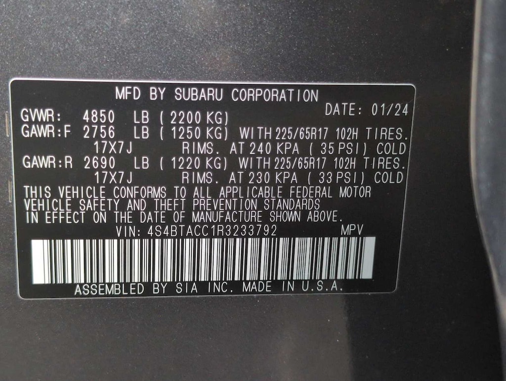 All-Weather Floor Liners, AM/FM radio: SiriusXM, Auto High-beam Headlights, Auto-Dimming Mirror w/Compass & HomeLink, Automatic temperature control, Emergency communication system: STARLINK Safety Plus (3-year free trial), Exterior Parking Camera Rear, Front dual zone A/C, Front fog lights, Fully automatic headlights, Heated Front Bucket Seats, Leather Shift Knob, Leather steering wheel, Popular Package #1A, Radio: Subaru STARLINK 11.6 Multimedia Plus Sys, Rear Bumper Cover, Standard Model, Telescoping steering wheel, Wheels: 17 x 7J Black Aluminum-Alloy. CARFAX One-Owner.