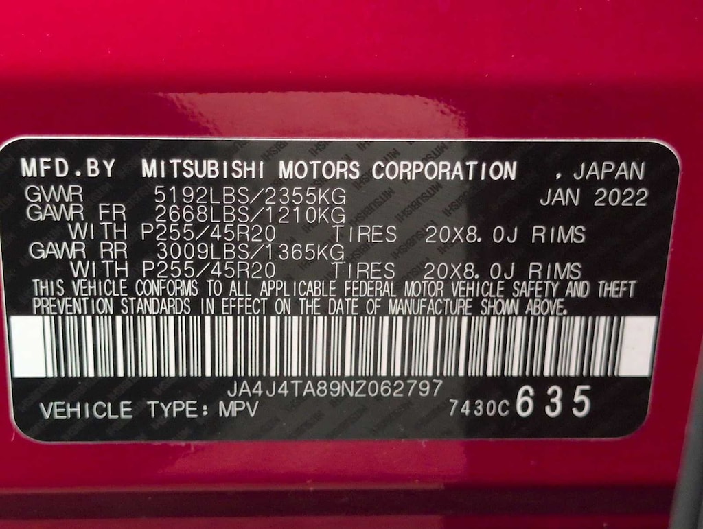 4WD, 3rd row seats: split-bench, All Weather Floormats, All Weather Package, Auto High-beam Headlights, Automatic temperature control, Black Side Sill Garnish Delete, Cargo Liner, Carpeted Floor Mats & Portfolio, Center Console Tray Mat, ES Convenience Package, Exterior Parking Camera Rear, Front Bucket Seats, Front dual zone A/C, Fully automatic headlights, Mitsubishi Connect w/Safeguard & Remote Services, Radio: AM/FM 8.0 Smartphone Link Display Audio, Rear Parking Sensors, Reclining 3rd row seat, Touch-Up Paint Pen, Welcome Package, Wheels: 20 x 8J Two-Tone Alloy.