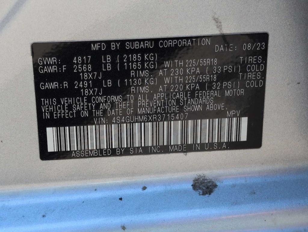 All-Weather Floor Liners, Auto High-beam Headlights, Auto-Dimming Exterior Mirror w/Approach Light, Auto-Dimming Mirror w/Compass & HomeLink, Automatic temperature control, Emergency communication system: STARLINK Safety and Security (Subscription Required), Exterior Parking Camera Rear, Front dual zone A/C, Front fog lights, Fully automatic headlights, harman/kardon Audio & Power Moonroof, harman/kardon Surround Sound Speaker System, Heated Front Bucket Seats, Illuminated entry, Leather Shift Knob, Leather-Trimmed Upholstery, LED Upgrade, Popular Package #4A, Power Moonroof, Radio: Subaru STARLINK 11.6 Multimedia Plus Sys, Rear Bumper Cover, Rear window defroster, Splash Guards, STARLINK/Apple CarPlay/Android Auto, Wheels: 18 x 7.0J Dark Gray Aluminum Alloy.